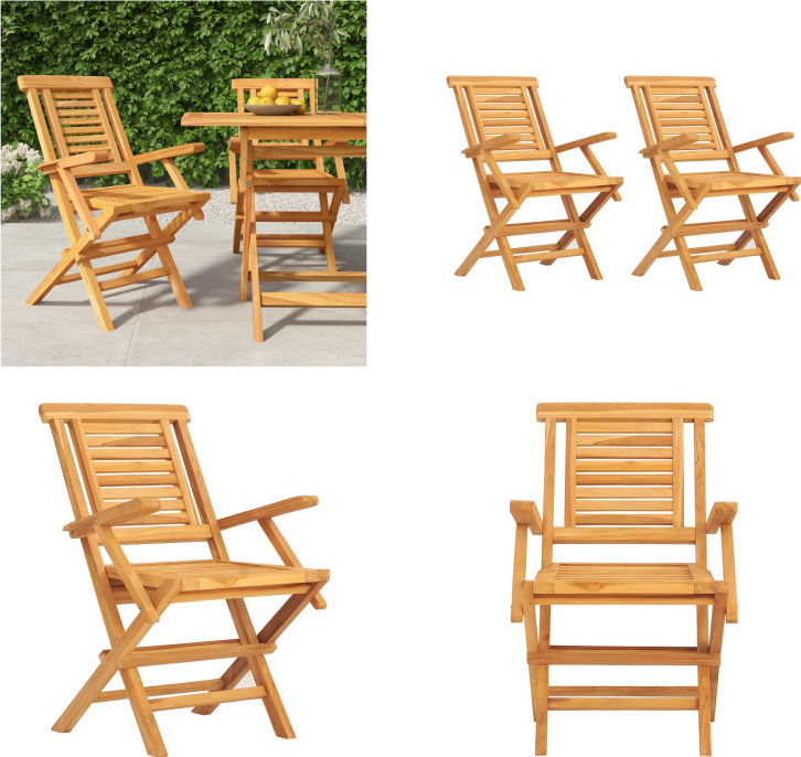 vidaXL Chaises de jardin 2 pcs. Pliable bois massif teck - Chaise de jardin - Chaise de jardin en bois - Chaise de jardin en bois massif
