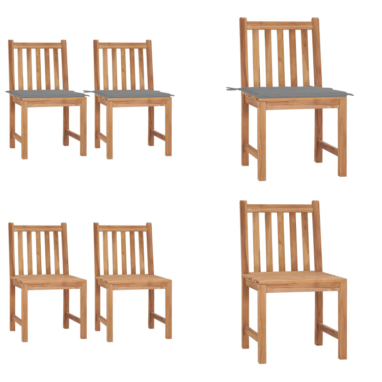 vidaXL Chaises de jardin avec coussins gris 6 pcs. Bois massif teck - Chaise de jardin - Chaise de jardin en bois - Chaise de jardin en bois
