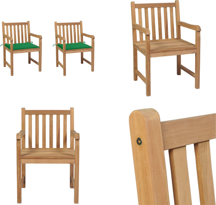 vidaXL Chaises de jardin 2 pcs. avec coussins verts bois massif teck - Chaise de jardin - Chaise de jardin - Chaise en bois