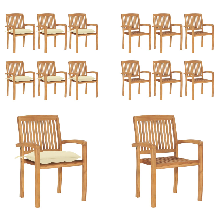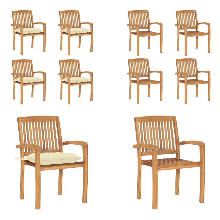 vidaXL Chaises de jardin empilables avec coussins 8 pcs. Bois massif teck - Chaise de jardin - Chaises de jardin - Chaise en bois