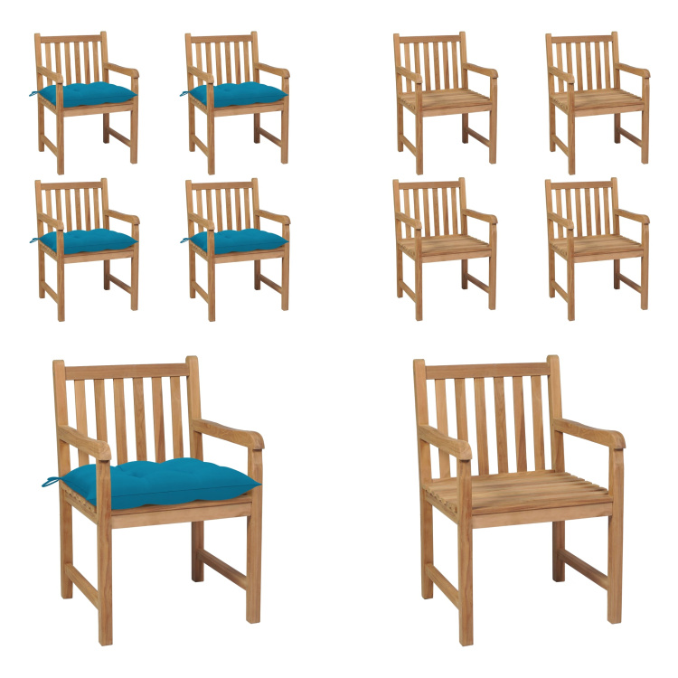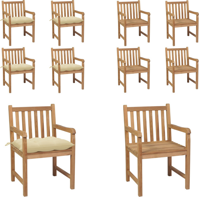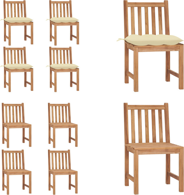 vidaXL Chaises de jardin 8 pcs. avec coussins bois massif teck - Chaise de jardin - Chaise de jardin en bois - Chaises de jardin en bois