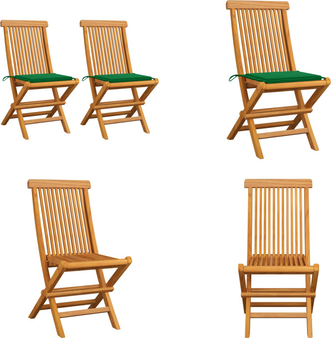 vidaXL Chaises de jardin avec coussins verts 2 pcs. Bois massif teck - Chaise de jardin - Chaise de jardin en bois - Chaise de jardin en bois