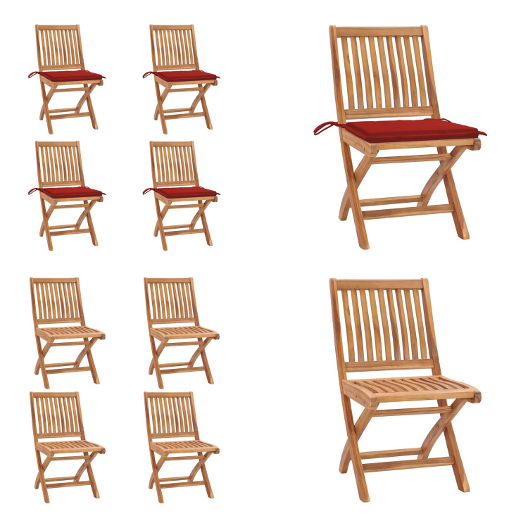 vidaXL Chaises de jardin pliantes avec coussins 8 pcs. Bois massif teck - Chaise de jardin - Chaise de jardin - Chaise en bois