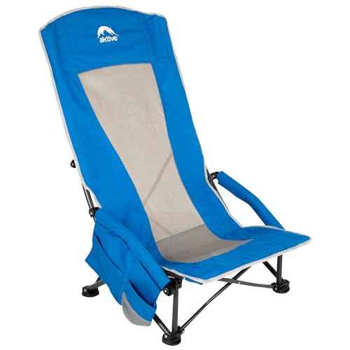 AKTIVE Chaise Pliante, 55X45X95 cm, Bleu, Assise Basse, Dossier Haut, Pochette, Porte-Gobelet, Anti-Bascule, Supporte 110 kg, Structure en Acier, Tissu Polyester, Bandoulière, Chaises Pliantes (63065)