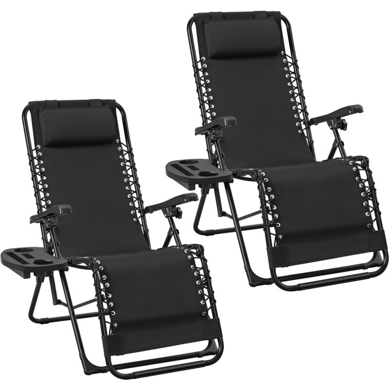Yaheetech Transat en Textilène avec Plateau Amovible, Lot de 2 Chaise Longue Pliante de Zéro Gravité Inclinable, Fauteuil Relax pour Bain de Soleil