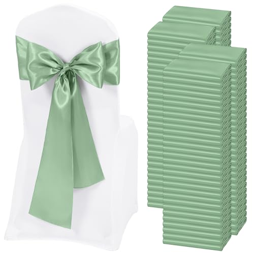 Bouiexye Lot de 50 nœuds universels en satin vert sauge pour chaise, mariage, réception, événements, banquets, hôtel, événements, décoration de chaise (17,8 x 274,3 cm)