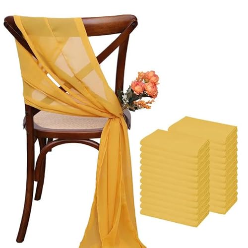 Yurosiay Lot de 2 housses de chaise de mariage - En mousseline de soie - Romantique - En mousseline de soie - Pour chaise de mariage - Vert sauge - 50 x 300 cm