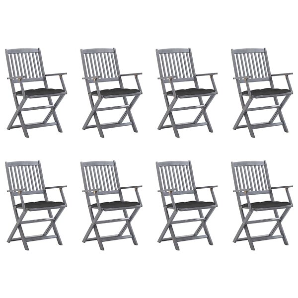 vidaXL Chaises de jardin pliantes avec coussins Ensemble de 8 acacia massif 3075