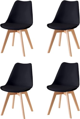 Baroni Home Chaises de Salle à Manger ou de Bureau avec Pieds en Bois, Chaise Ergonomique avec Coussin intégré 57X48X79 cm - Noir, 4 pièces