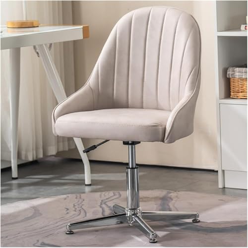 Chaise De Bureau Rembourrée en Tissu sans roulettes, Chaises De Bureau à Pieds Croisés, Chaise De Bureau Pivotante sans Accoudoirs, Chaises De Bureau Ergonomiques à Dossier M, PU Cream