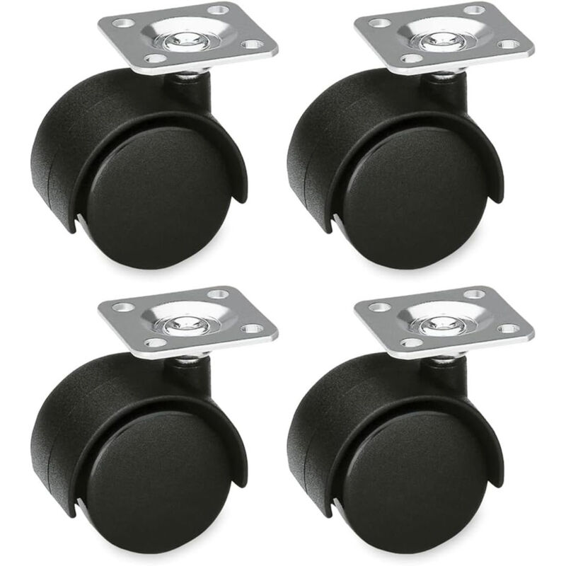 Lot de 4 roulettes pivotantes noires Ø 30 mm sans frein pour meubles avec plaque en acier – fabriquées en plastique rigide – sans frein, idéales pour chaises de bureau ou tables basses