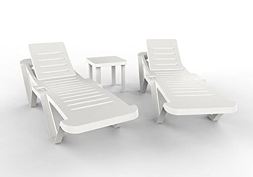 Resol Set 2 chaises Longues Master et 1 Table auxiliaire Andorra | Chaises Longues empilables avec roulettes, Dossier réglable | Meubles de Jardin Extérieur | Couleur Blanc
