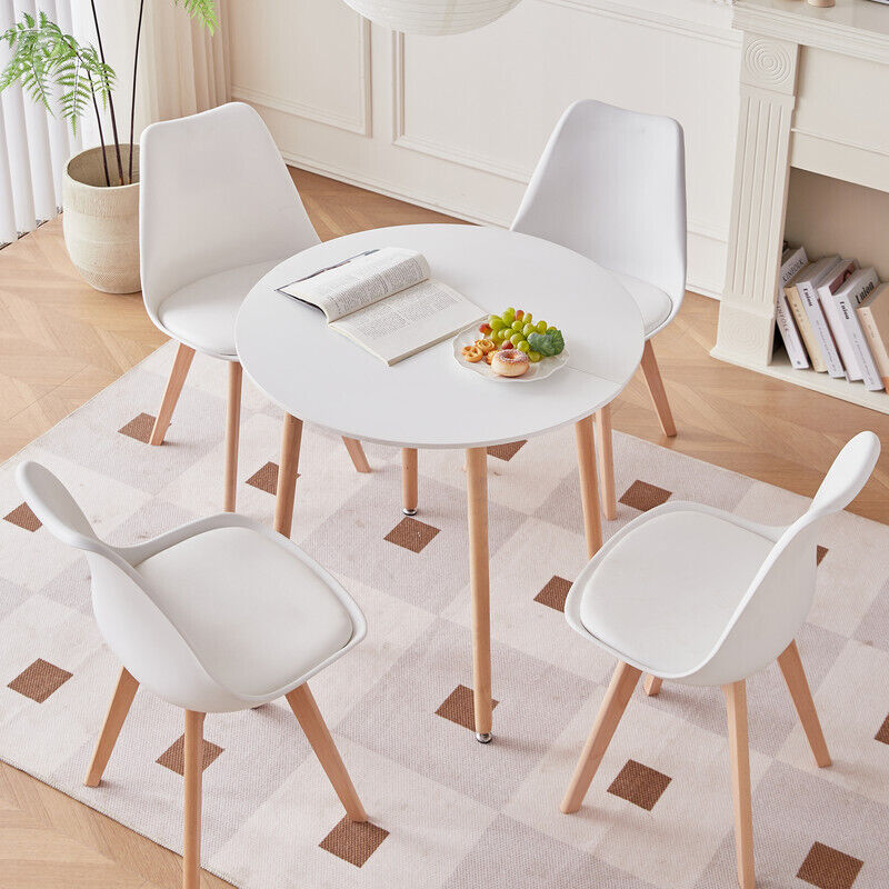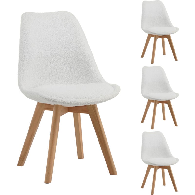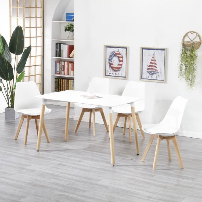 Ensemble salle à manger moderne lorenzo - table effet chêne + 4 chaises blanches - design scandinave