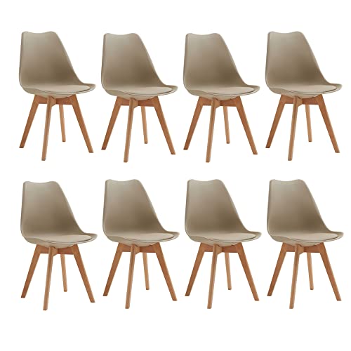 EGOONM Lot de 8 Scandinaves Chaises de Salle à Manger, Chaises de Style Nordique, Chaises de Cuisine Rembourrées (Marron)