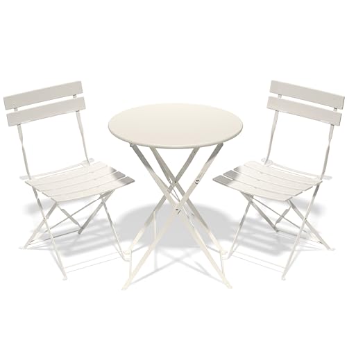 RELAX FIELD Ensemble de mobilier de jardin résistant aux intempéries, ensemble de meubles de balcon 3 pièces pour petit balcon, table de bistrot avec 2 chaises, ensemble de bistrot pliable, Blanc