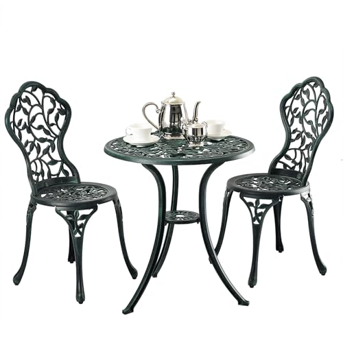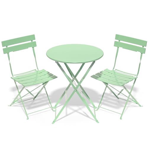 RELAX FIELD Lot de 3 meubles de jardin de balcon, résistants aux intempéries, pour petit balcon, table de bistrot avec 2 chaises, pliable, vert