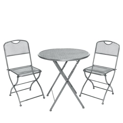 greemotion Ensemble de Jardin Estera, Lot de Mobilier d'extérieur en Acier Plastifié, 3 Pieces Ensemble de Balcon, 1 Table Ronde et 2 Chaises, Gris Fer