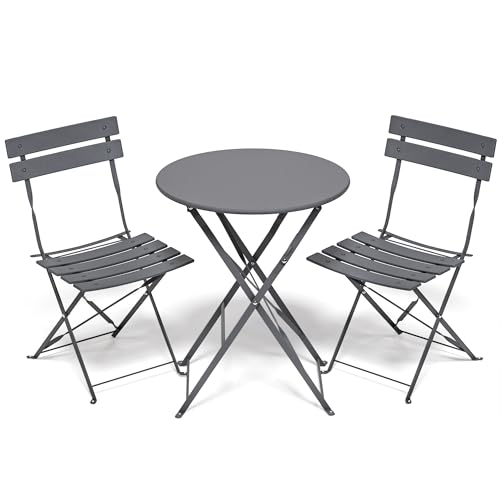 RELAX FIELD Ensemble de mobilier de jardin résistant aux intempéries, ensemble de meubles de balcon 3 pièces pour petit balcon, table de bistrot avec 2 chaises, ensemble de bistrot pliable, gris