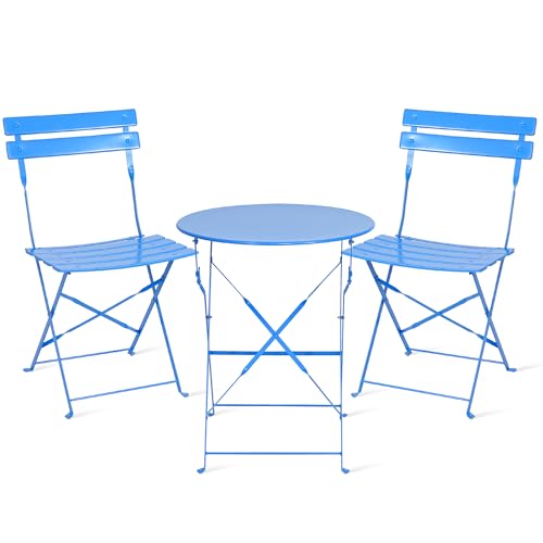 RELAX FIELD Lot de 3 meubles de jardin de balcon, résistants aux intempéries, pour petit balcon, table de bistrot avec 2 chaises, pliable, bleu