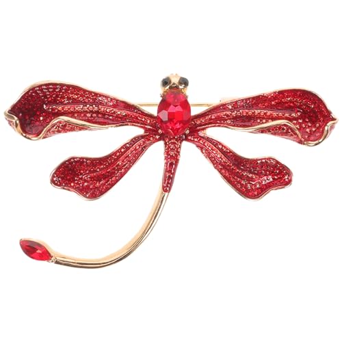 WOFASHPURET Broche Libellule Rouge Décorée de Cristaux, Épingle en Métal Solide, Accessoire Vintage pour Robe et Châle, Bijou Femme Élégant pour Saint-valentin et Occasions Spéciales