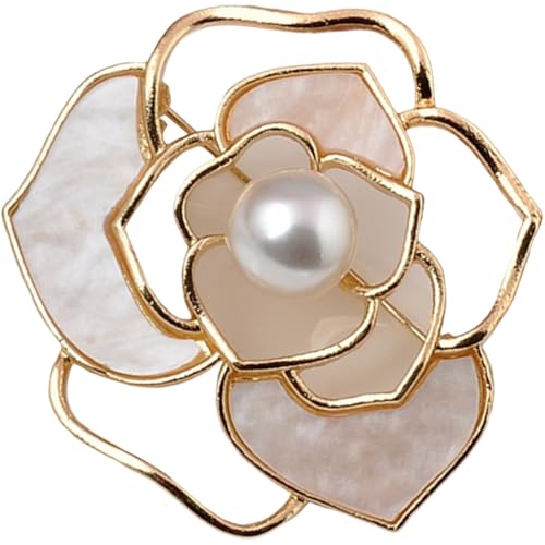 CTIRCHIU Broche Fleur Magnétique en Coquillage Naturel Blanc Petite Broche Décorative Cinq Pétales Accessoire Mode pour Vêtements et Écharpes Épinglette Châle Femme Présent Élégant