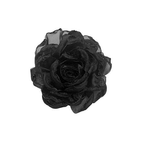 90mm Broche Fleur De Camélia Pour Femme Élégante Broche En Organza Artisanale Accessoire De Mode Pour Robe Costume Châle Ou Mariage Pour Cérémonie Banquet Soirée Bijoux Parfait (Noir)