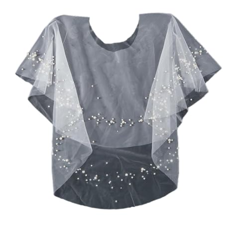 GORGECRAFT Capes de Mariée de Mariage Fausses Perles Strass Capes de Soirée Châle Enveloppe Haussement D'Épaules Court Couverture Cape Écharpe Perlée Tulle Châle pour Robe de Bal Fête Femmes Blanc