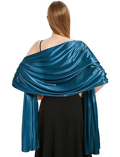 heekpek Satin Foulard Chale Femme Mariage Echarpes pour Robe de Soirée Élégant Chic Etole Femme pour Soirée Cérémonies Fêtes Mariage, Bleu Palourde, Taille unique