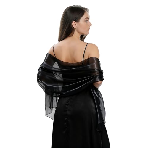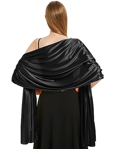 heekpek Satin Foulard Chale Femme Mariage Echarpes pour Robe de Soirée Élégant Chic Etole Femme pour Soirée Cérémonies Fêtes Mariage, Noir, Taille unique