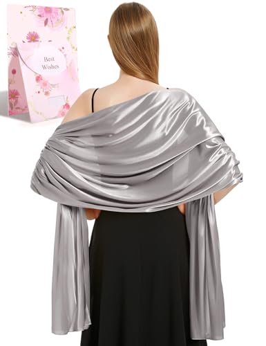heekpek Satin Foulard Chale Femme Mariage Echarpes pour Robe de Soirée Élégant Chic Etole Femme pour Soirée Cérémonies Fêtes Mariage, Gris, Taille unique