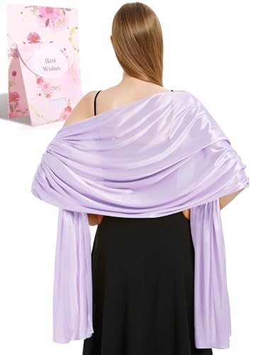 heekpek Satin Foulard Chale Femme Mariage Echarpes pour Robe de Soirée Élégant Chic Etole Femme pour Soirée Cérémonies Fêtes Mariage, Violet Clair, Taille unique