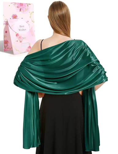 heekpek Satin Foulard Chale Femme Mariage Echarpes pour Robe de Soirée Élégant Chic Etole Femme pour Soirée Cérémonies Fêtes Mariage, Vert Foncé, Taille unique