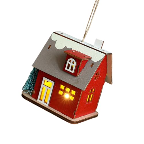 DIEKE Chalet de Noël en bois brillant et chaleureux - Maisons de Noël miniatures avec lumière LED - Décoration saisonnière de bureau