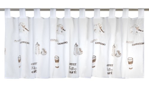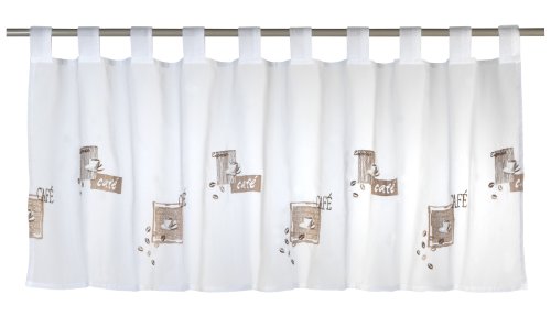 Elbersdrucke Rideau de bistrot Cafe 06 - Blanc-Marron Transparent - 48 x 140 cm - Rideau Court - pour Salon, Chambre à Coucher, Couloir, intimité - 169404