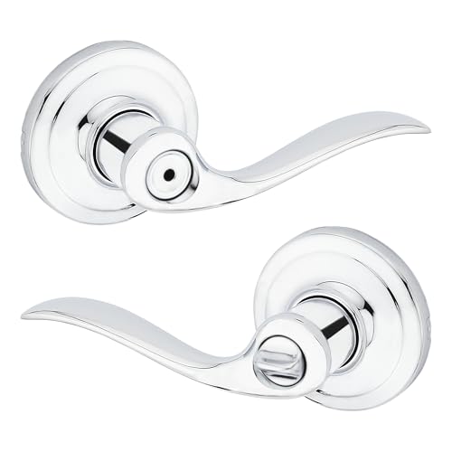 Kwikset Tustin 97300-728 Poignée de porte en chrome poli avec motif vague traditionnelle pour la maison, la chambre à coucher ou la salle de bain