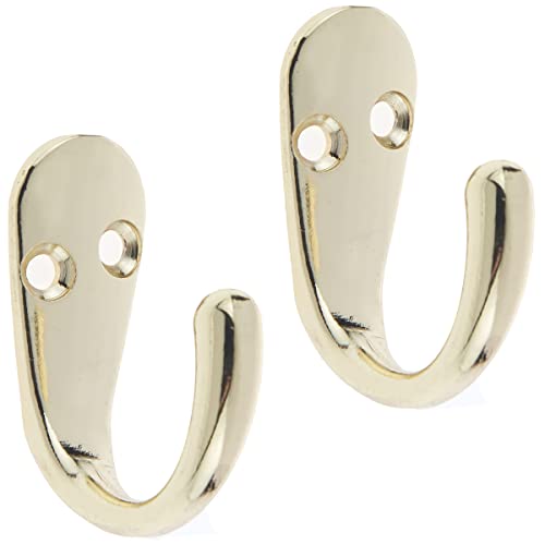 Select Hardware Lot de 2 Crochets Simples avec vis, Laiton Poli, Porte et Mur, pour Salle de Bain, Chambre à Coucher, Salon, Couloir