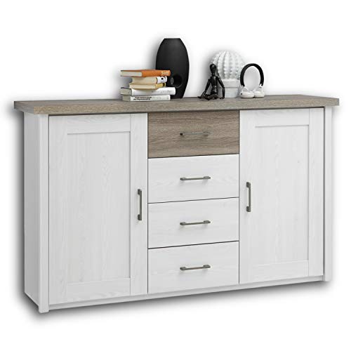 Stella Trading Luca Commode Élégante et Expressive pour Chambre à Coucher, Style Campagnard, Pin Blanc/Truffe, Dimensions (l x H x P) 150 x 90 x 42 cm