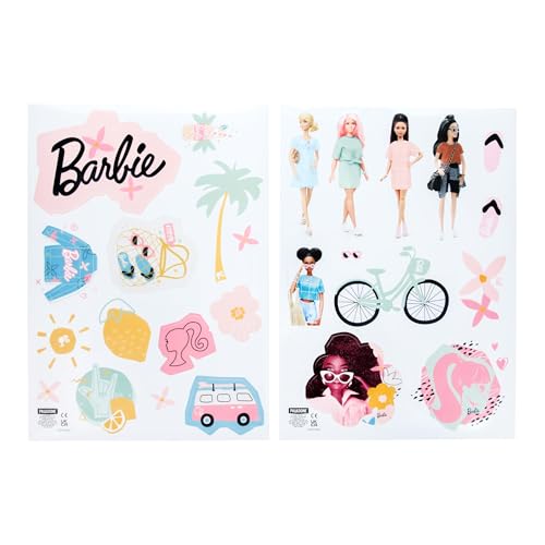 Paladone Autocollants Muraux Barbie - Officiellement Licenciés, Stickers Réutilisables pour Chambre d'enfant, Comprend Amis, Lettres, Vêtements & Accessoires, Décor de Chambre Filles