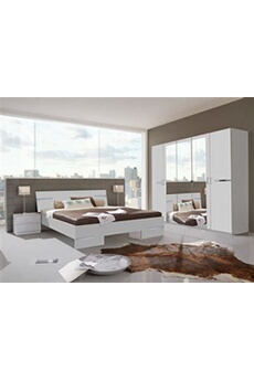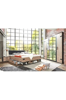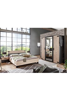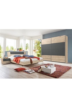 Chambre a coucher complete adulte (lit 180x200 cm + 2 chevets + armoire + commode), coloris chene --
