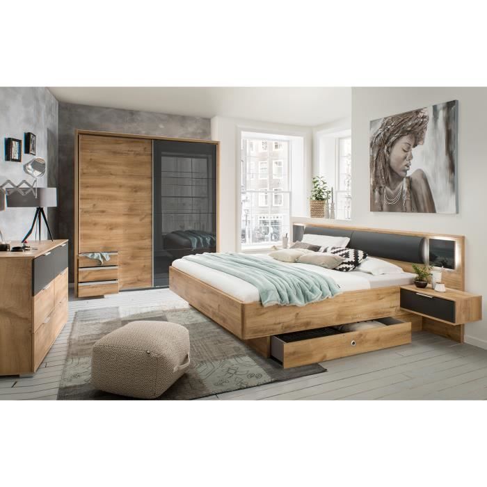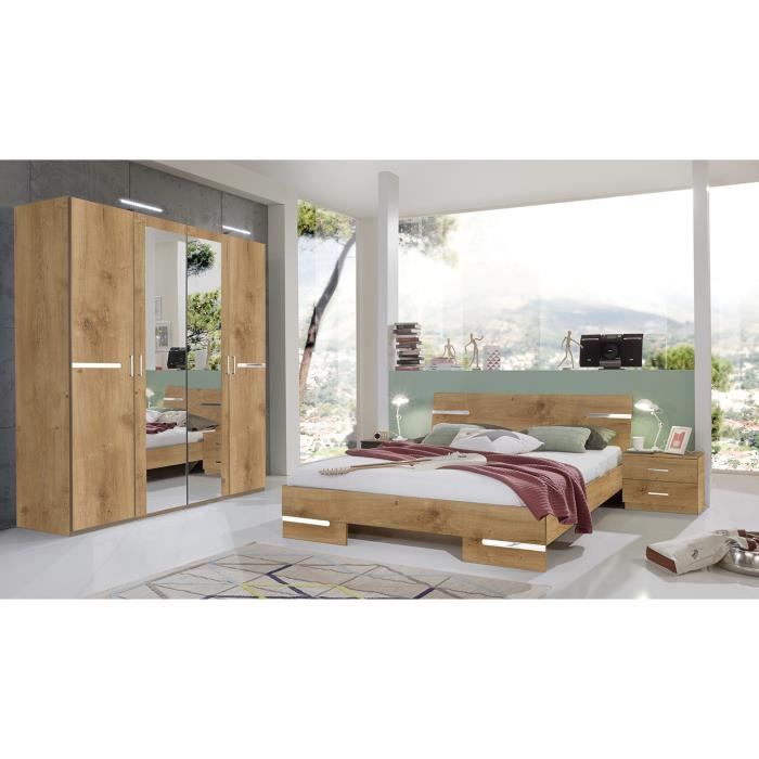 Ensemble de chambre à coucher adulte coloris effet bois blanc ( armoire + 2 chevets et tête de lit )