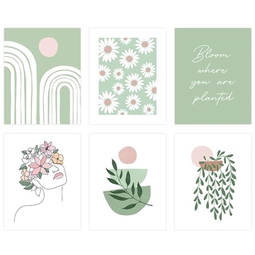 ZBHDEYG Lot de 6 peintures d'art vertes, impression murale, poster esthétique, poster botanique, accessoires de chambre vert sauge, convient pour le salon, la chambre à coucher, la salle à manger,