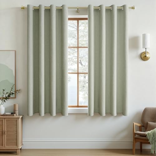 BellaHills Rideau Salon Occultant Thermiques,Rideaux Chambre,Vert Sauge Rideau Court,Rideaux et Draperies Intérieurs 2 Panneaux,132x240 cm