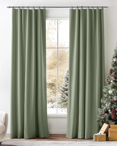 PONY DANCE Rideau Occultant - Rideau Salon Thermiques Draperies Intérieurs Galon Fronceur sans Percage Décoration pour Salon Chambre Maison, Sauge Vert, L 140 et H 210 cm, 2 PCs