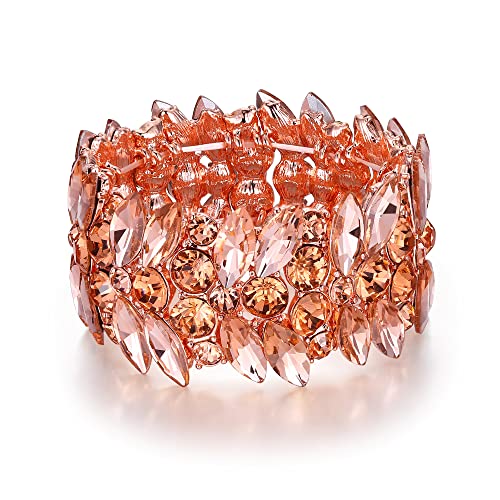 EVER FAITH Bracelet Élastique Femme Style Art Deco Mariage Cristal Rond Strass Champagne Ton Rosé Or