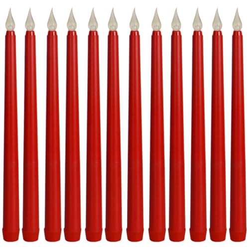 jojofuny Lot de 12 Bougies LED Chandelle Électriques sans Flamme, Design Réaliste en Plastique PP, Fonctionnant à Piles pour Décorations de Fêtes et Hôtels Rouges