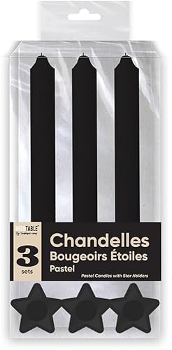 BOUGIES CHANDELLES X 3 SUPPORTS ETOILE NOIR