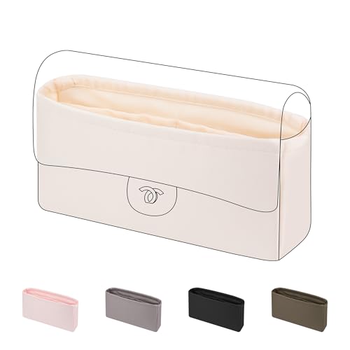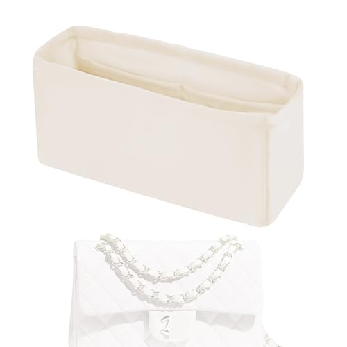 DGAZ Soie Organisateur de sac à main pour Chanel CF Classic Flap, Organisateur de sac à main soyeux et lisse, Organisateur de sac à main et de fourre-tout de luxe (Mini 17, Craie)