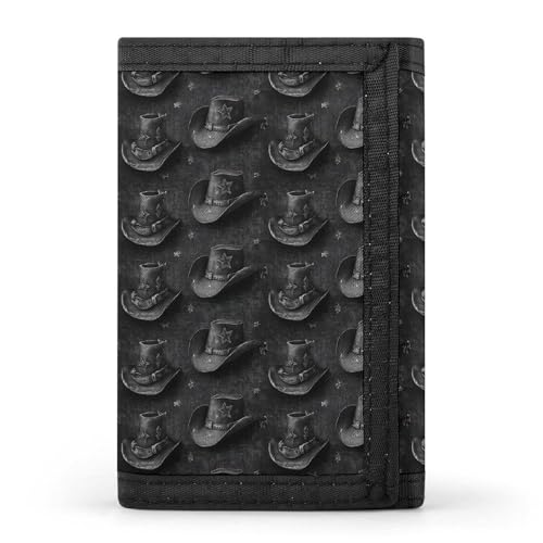 TZTTZT Portefeuille rétro noir imprimé chapeau de cowboy pour homme, petit portefeuille à deux volets pour homme, 8 porte-cartes de crédit, poche avant mince minimaliste