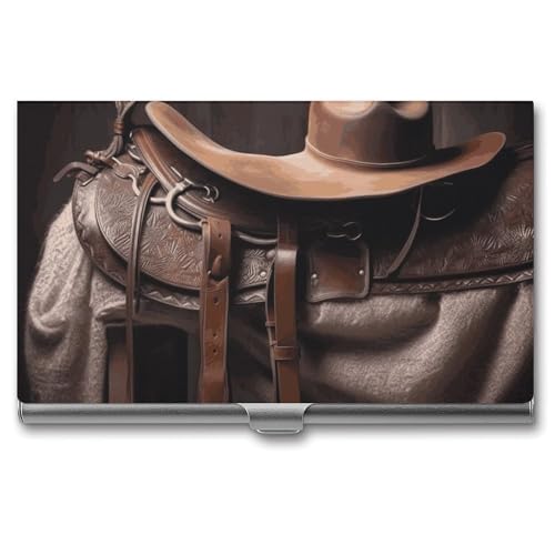 HJUQNGF Porte-cartes de visite en forme de selle de cheval avec chapeau de cowboy - Porte-cartes de visite fin en métal - Pour homme et femme, Argenté, 3.7x2.2x0.3 Inches, Classique