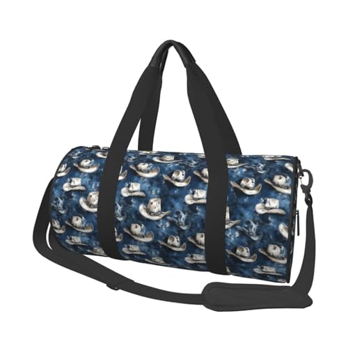 Sac de voyage bleu marine et blanc avec imprimé chapeau de cowboy pour homme et femme, sac de voyage pour le week-end, articles personnels